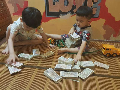 Hình ảnh hai cậu bé đập ống heo rồi cẩn thận xếp từng tờ tiền lẻ để ủng hộ đồng bào miền Trung hiện đang nhận được nhiều sự chú ý của cư dân mạng.