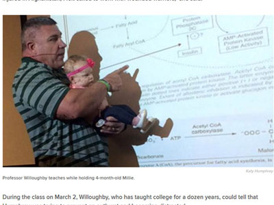 Một Phó giáo sư tại Trường đại học Baylor (Mỹ) đã vừa giảng bài vừa giữ con của học viên để bà mẹ này chú tâm học tập, theo tờ Huffington Post.