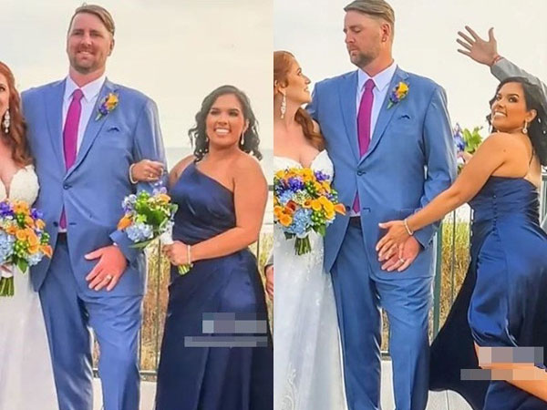 Cô dâu đã rất tức giận trước hành động mờ ám của phù dâu với chú rể trong lúc họ chụp ảnh kỷ niệm.