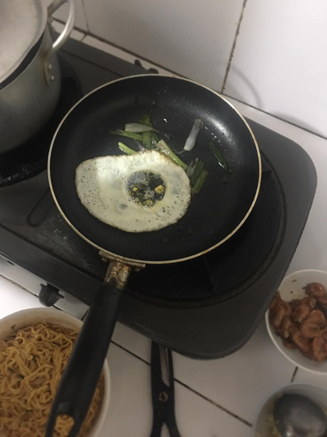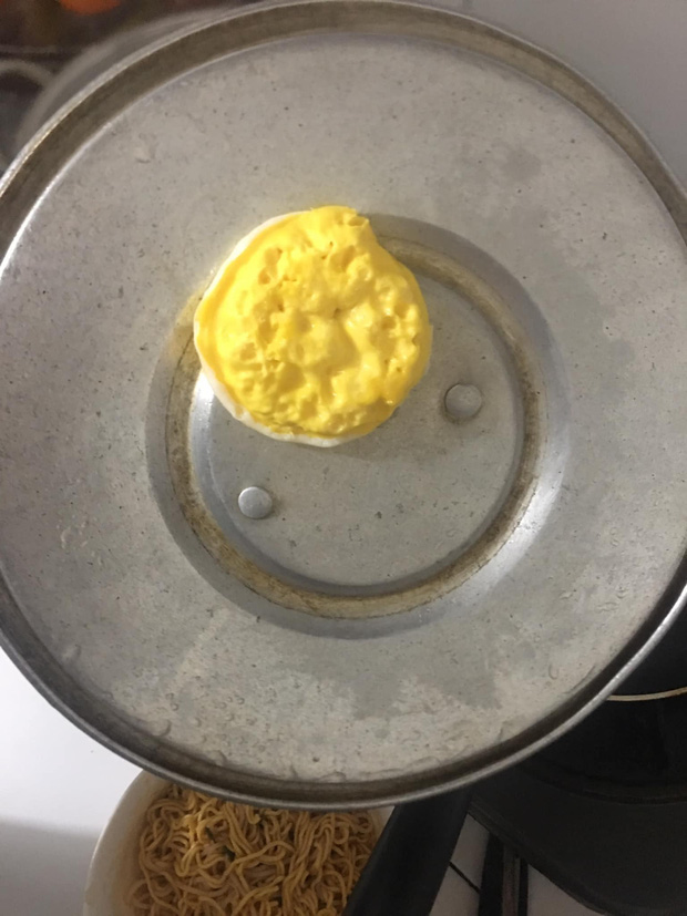 Cụ thể, cô nàng vào bếp định làm món trứng rán ốp la. Rán bằng chảo nhưng không hiểu sao cô nàng còn dùng một chiếc vung nhỏ úp lại, thành ra lòng đỏ trứng theo luôn chiếc nắp bay luôn. Mẹ cô nàng còn ngờ vực con gái yêu ăn vụng mà không biết "chùi mép": "Má mì mở nắp hỏi mày ăn lòng đỏ rồi hả? Mình phi xuống bảo đâu có! Té ra...".