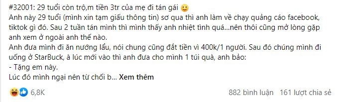"Anh này 29 tuổi, mình xin tạm giấu thông tin, sơ qua thì anh làm về chạy quảng cáo facebook, tiktok gì đó. Sau 2 tuần tán mình thì mình thấy anh nhiệt tình quá nên thôi cũng mở lòng gặp anh xem ở ngoài anh thế nào.