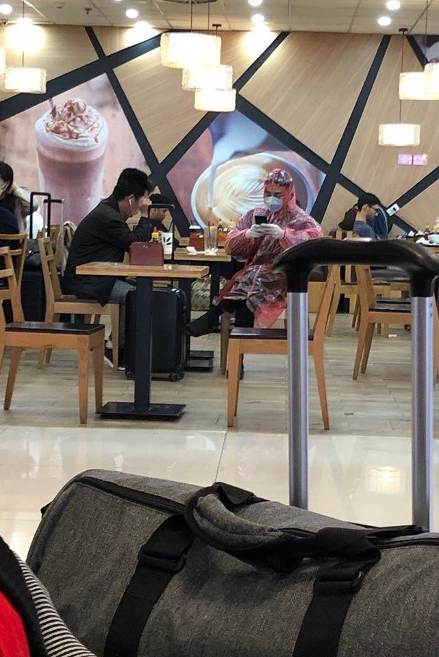 Trước đó nhiều hình ảnh được chụp tại các điểm công cộng cho thấy vì lo sợ dịch bệnh mà một số trường hợp mặc áo mưa, đeo khẩu trang chống độc, thậm chí mặc áo mưa.