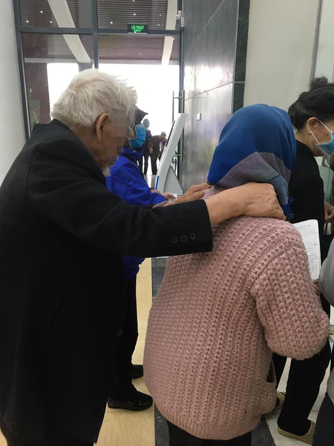 Câu chuyện gây xúc động này được một người chứng kiến trong bệnh viện kể lại. Kèm theo đó là bức ảnh hai cụ già đang động viên, dìu nhau đi khám bệnh, bên cạnh không hề có con cháu.