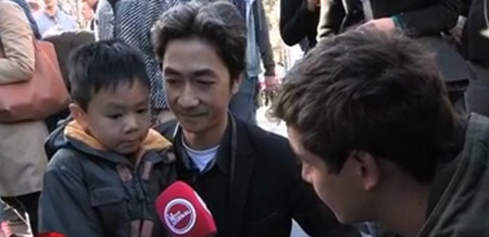 Bé Lê Chí Cường và bố trong cuộc phỏng vấn sau khi vụ khủng bố xảy ra - (Ảnh cắt từ clip) |