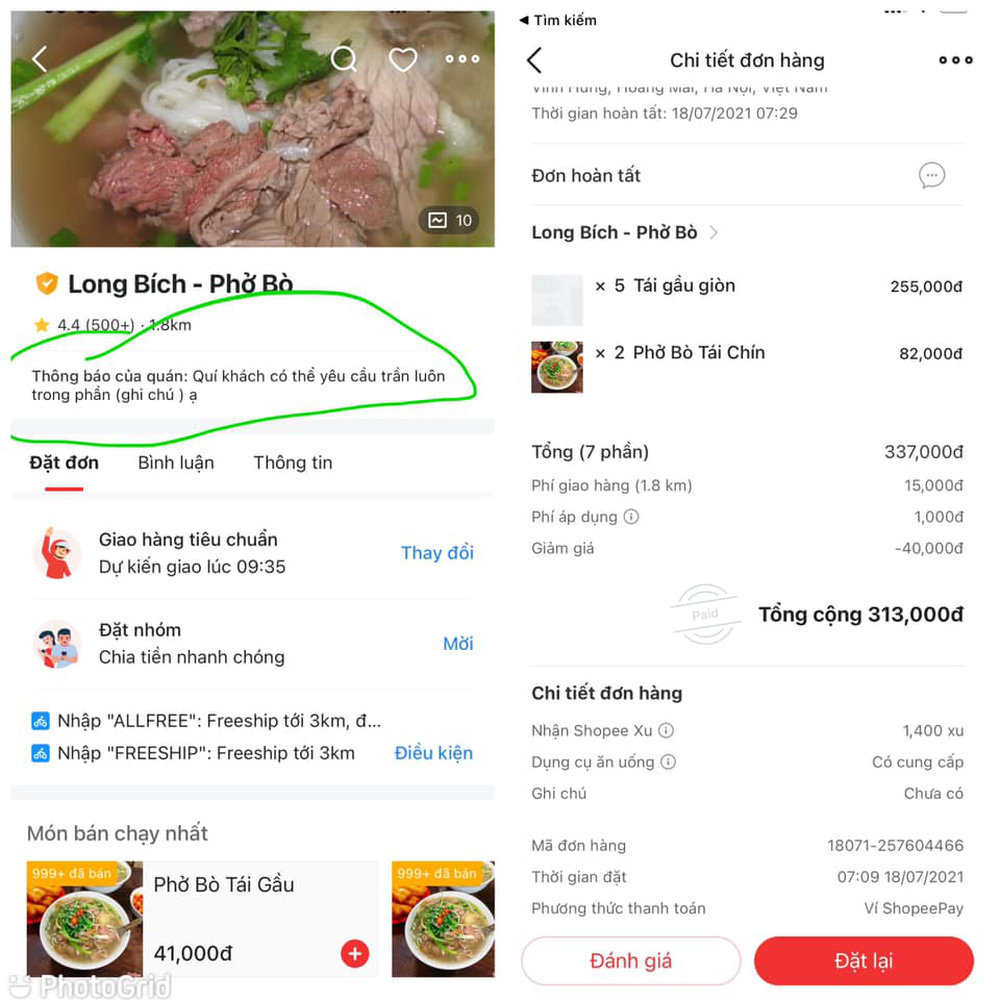 Câu chuyện trên vẫn đang được bàn luận rôm rả trên diễn đàn ăn uống. Khách và chủ quán đều có những lý lẽ của riêng mình. Việc chuyển hình thức kinh doanh từ ăn tại chỗ đến ship online quả thực đã làm khó cả người mua và người bán, nhất là với những món ăn đặc trưng mà ngồi tại chỗ, ăn khi nước dùng còn nóng hổi, ăn xong bát vẫn còn âm ấm mới ngon như phở, bún...