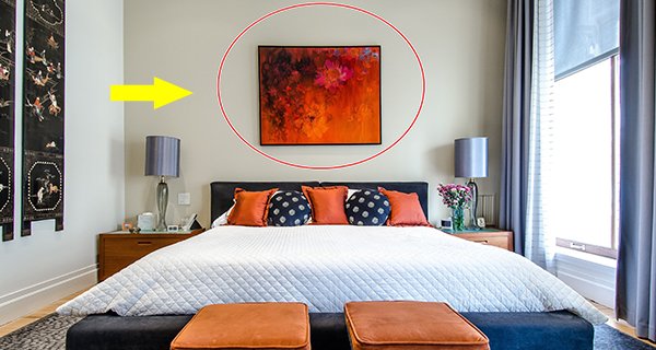 Treo tranh đầu giường giống như vật cản đè lên tài vận khiến gia chủ khó có thể phát triển sự nghiệp, công danh do tinh thần dễ hoảng loạn, sa sút.