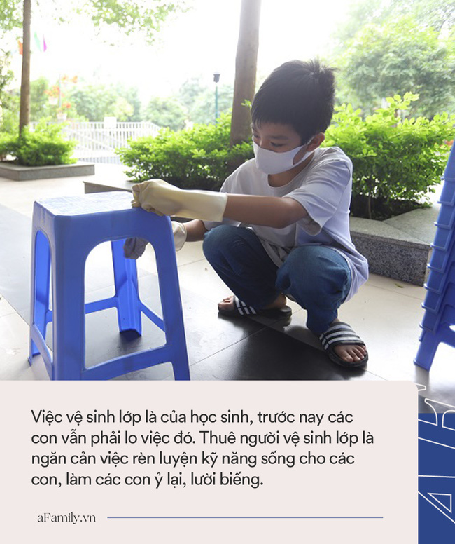 Theo bà Hương, học sinh hoàn toàn có thể làm vệ sinh lớp được. Hơn nữa, đó cũng là nhiệm vụ dạy kỹ năng cho học sinh của nhà trường. Bố mẹ thì cần phải dạy con và phối hợp với nhà trường hướng dẫn các con tự vệ sinh lớp.