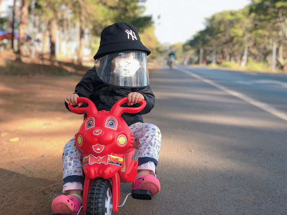 Chia sẻ thêm về hành trình "du hí" của bé Như, chị Ngọc Anh cho biết: "Bé nhà mình mới được 2 tuổi rưỡi. Thực ra không phải bé đi phượt bằng chiếc xe thỏ mà là lần đầu tiên đi xa bằng xe máy với bố mẹ.