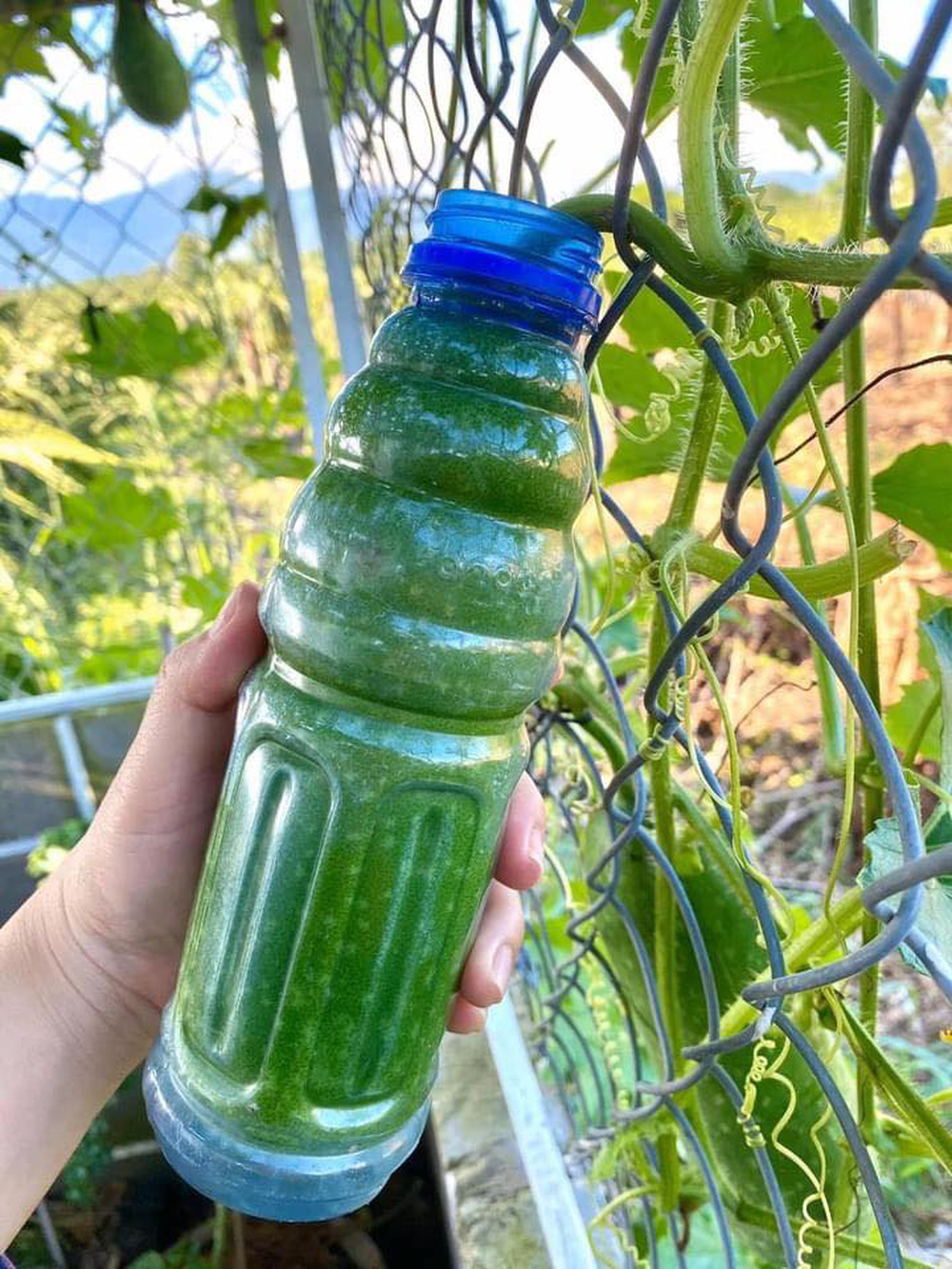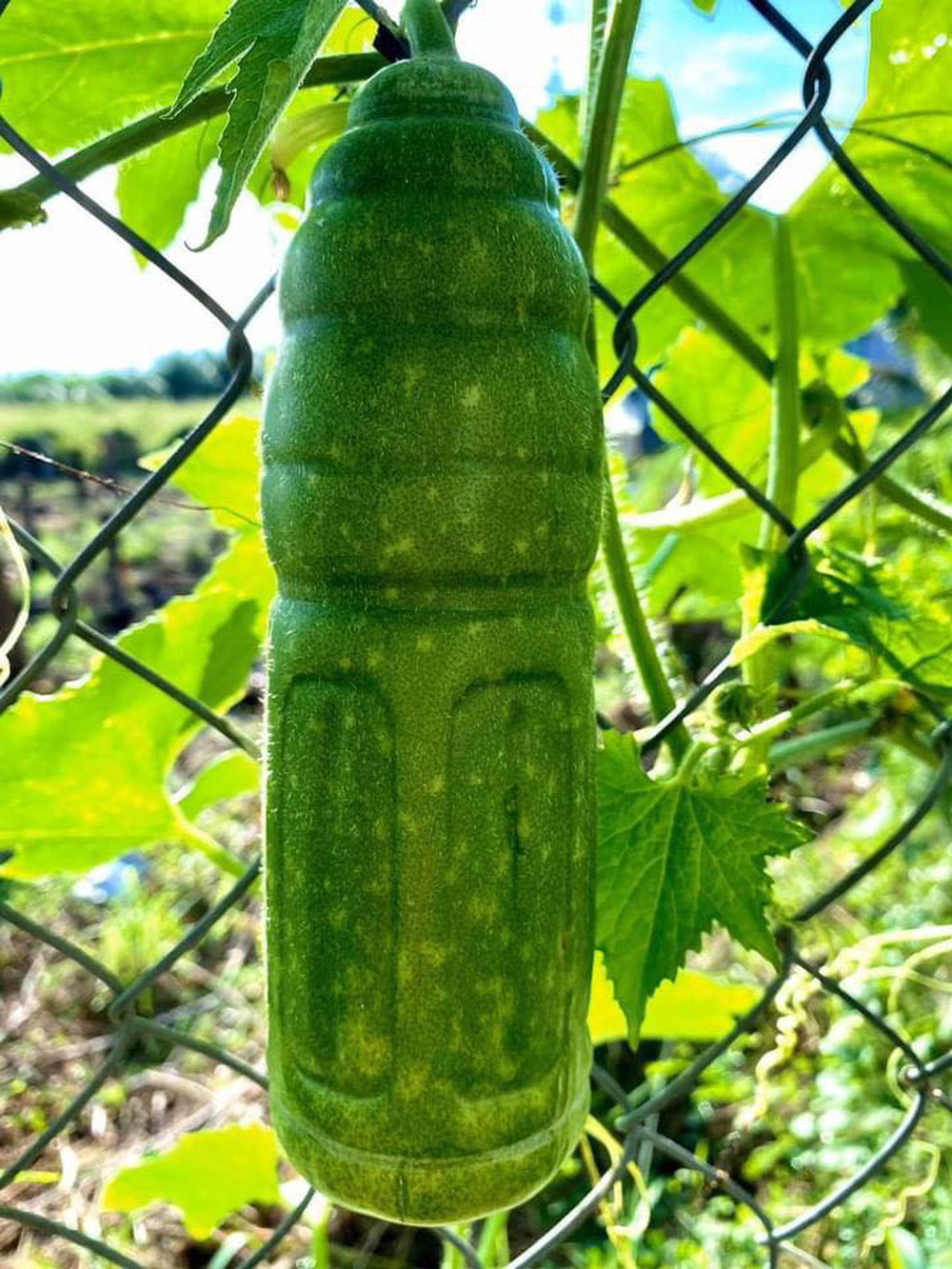 Theo đó, khi quả bí còn nhỏ, người ta đã cho nó vào một chai nước rỗng. Đến khi quả lớn dần, kín chặt các góc cạnh của chai thì cũng đến lúc thu hoạch.