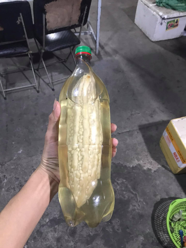 Theo đó, có thể thấy rõ quả mướp đắng còn nguyên vẹn, và có kích cỡ to hơn nhiều so với miệng chai. Bên trong chai cũng đang chứa chất lỏng, nên khả năng khoét lỗ rồi giả vờ dùng góc chụp để dựng lên tình huống là rất thấp. Vì thế mà dân mạng vô cùng nghi hoặc. Vô số giả thuyết đã được đưa ra: