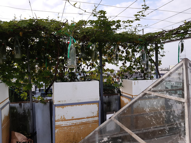 Có những nhà vẫn áp dụng cách này, lồng vào chai từ khi còn nhỏ, quả mướp sẽ lớn lên. (Ảnh: Thuỳ An)