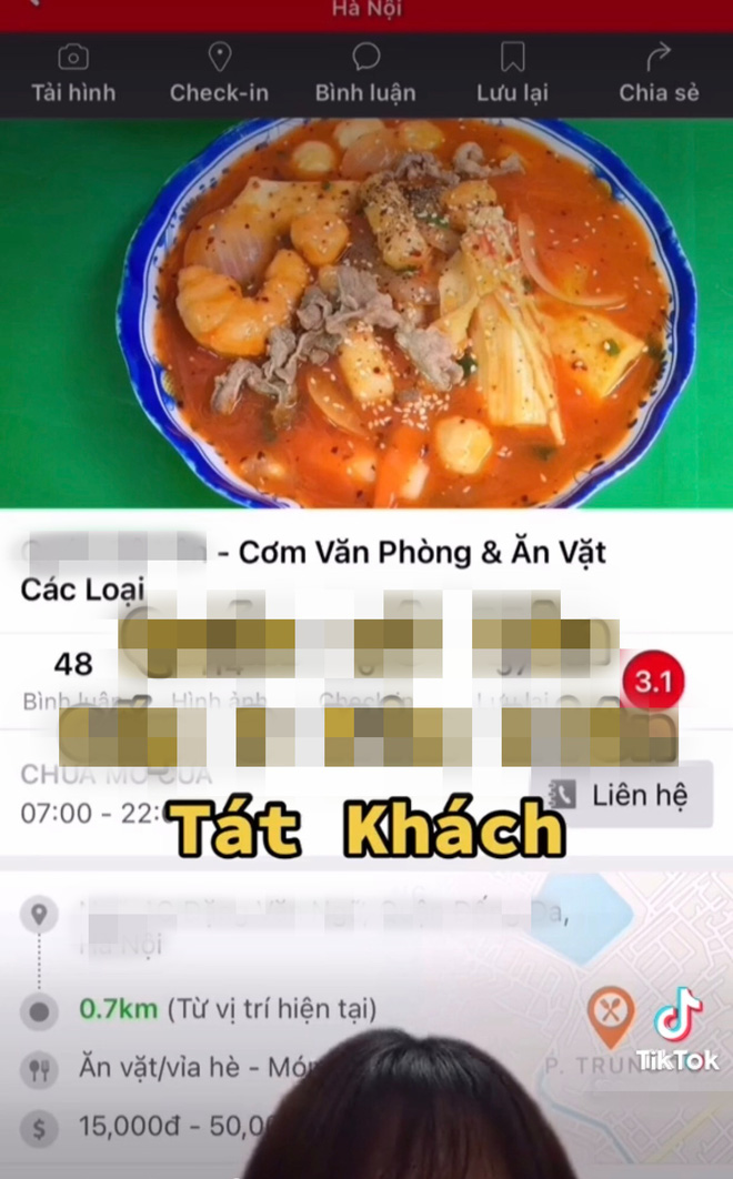 Cùng lúc ấy con gái chủ quán nói từ trong bếp vọng ra ý trách móc: "Từ lần sau khách order lúc sau thì không nhận nữa không lại huỷ". Biết là đang bị "đá xoáy" mặc dù không phải lỗi của mình nhưng vị khách nữ không muốn làm to chuyện nên im lặng.