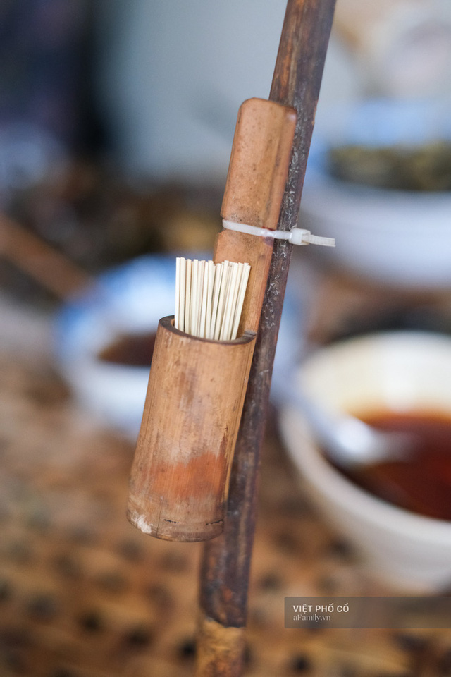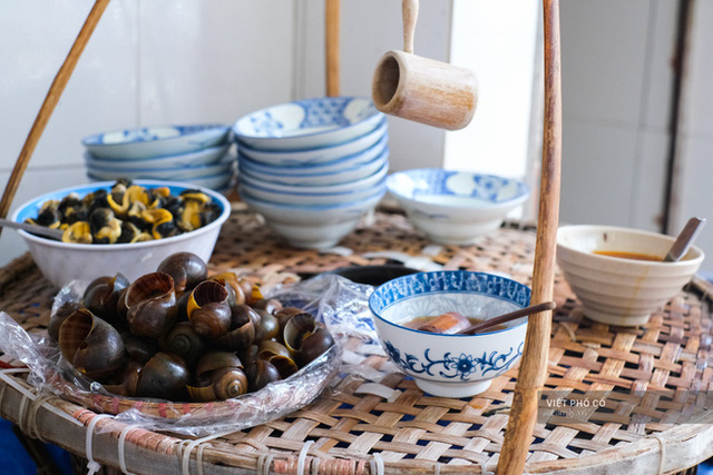 Mọi chi tiết bày biện ở đây chạm ngưỡng hoàn hảo cho một gánh bún ốc nguội của ngày xửa ngày xưa. Đầu tiên là về hình thức: Mẹt tre đựng ốc, đũa tre cật già, chum sành đựng nước dùng, gáo tre nho nhỏ để múc nước ốc hay dấm bỗng, ống tre đựng tăm, chục đôi bát chiết yêu... Mọi thứ đều giản đơn và sạch sẽ.