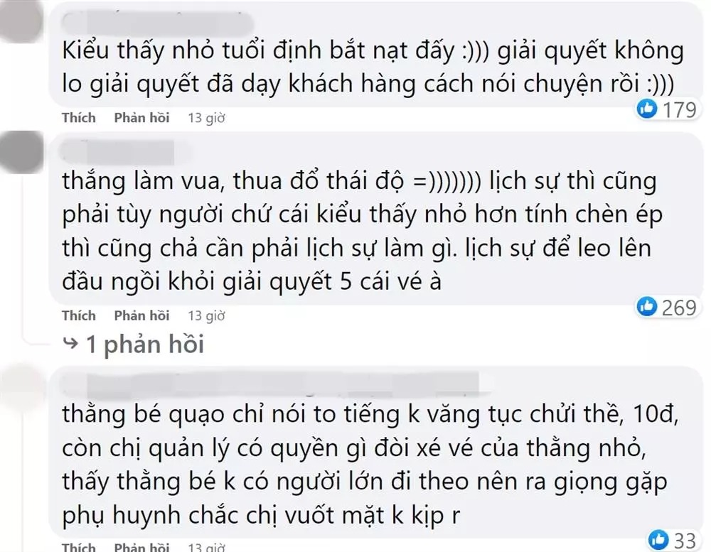 Cuộc tranh cãi giữa hai bên rất gay gắt, nữ quản lý nói nếu check cam mà nghe thấy nhân viên bán vé đã tư vấn độ tuổi thì sẽ xé ngay vé, tuy vậy khi check cam lại hoàn toàn không nghe thấy gì - nam sinh chia sẻ.