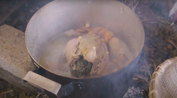 Ấy thế nhưng, một sự "hoang mang" khác lại trỗi dậy trong lòng khán giả vì vlog lần này có vẻ “nói một đằng, làm một nẻo”. Cụ thể, trên tiêu đề ghi “Làm Nồi Gà Hầm Thuốc Bắc Ngải Cứu”, vậy mà trong clip lại không hề thấy thuốc bắc đâu, chỉ là gà hầm với củ quả và ngải cứu.