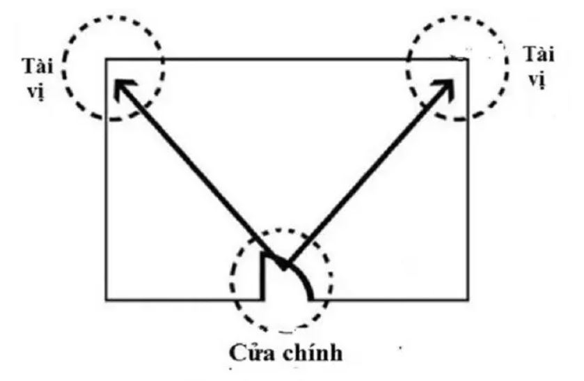 Cụ thể, nếu cửa chính nằm lệch về một bên so với ngôi nhà, tài vị sẽ nằm chéo góc với cửa nhà. Nếu cửa nằm chính giữa căn nhà, phòng khách sẽ có 2 tài vị là góc đáy nhà.