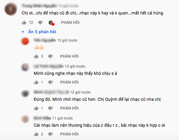 Người xem tha thiết mong chị Quỳnh sử dụng lại nhạc nền cũ, một số người thậm chí còn thấy mất hứng với bản nhạc mới. Thực chất các phần lồng nhạc mới của Quỳnh Trần JP không phải là không hay, nhưng do người xem đã quen với âm thanh cũ nên khó để thấy hoà hợp.