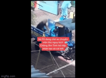 Kèm theo đó là dòng chia sẻ, "Vợ F0 đang chờ xe chuyển viện thì nguy kịch, chồng âm tính liền hô hấp nhân tạọ".