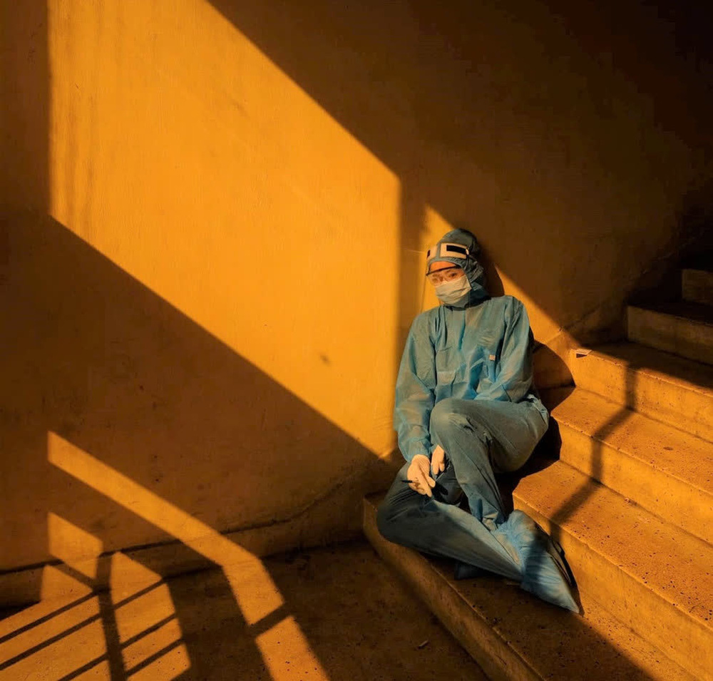 - Họ phục vụ cả cộng đồng, cảm trăm người một buổi, nói bé thì ai nghe ai lọt? Lại còn đeo full combo găng tay + đồ bảo hộ + kính chống bắn + khẩu trang, nóng nực gấp bội mà vẫn dịu dàng, chu đáo. Thấy vừa thương vừa nể!