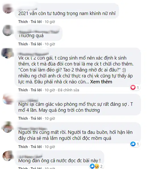Chỉ ít giờ sau khi đăng tải, bài viết của người chồng này đã nhận về gần 10 nghìn lượt bày tỏ cảm xúc. Ai nấy đều xót xa vô cùng cho số phận ngắn ngủi của người vợ, đồng thời cho rằng, con gái hay con trai cũng đều là con, bất chấp tính mạng để đẻ cố cho được 1 mụn con nối dõi thì quả thật vừa đáng thương, vừa đáng giận.
