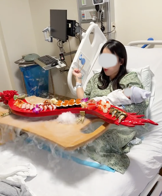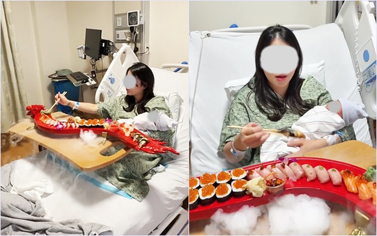 06/06/2025 01:27Sản phụ gây tranh cãi dữ dội vì vừa sinh xong đã mukbang sushi ngay trên giường bệnh, ôm con ngồi ăn giữa làn khói mịt mù
