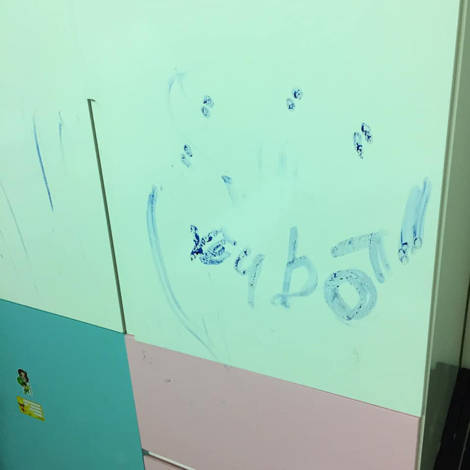 Về dòng chữ "Yêu bố" trên tường, chị Quỳnh nói thêm, bé Chíp rất thân thiết với bố, bố hiền và cũng rất chiều Chíp. Từ khi mẹ sinh em Điều Hòa, việc chăm sóc Chíp do bố đảm nhiệm cả, từ ăn uống đến học hành. Cô bé học giỏi tiếng Anh nên rất thích viết kiểu chữ in, từng chữ cái rời ra mà không dính nhau như quy tắc tiếng Việt.