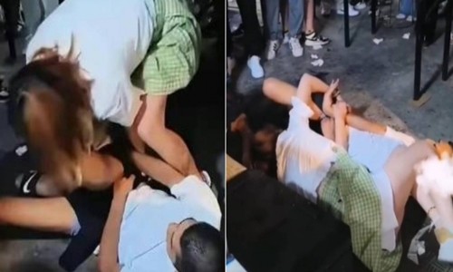 Không màng đến đám đông, cũng không ngần ngại ánh mắt người đời, cô gái lao vào tấn công, đẩy ngã người đàn ông xuống đất. Sau đó, trước sự ngạc nhiên của tất cả mọi người, cô gái cố cởi bỏ quần áo của đối phương.