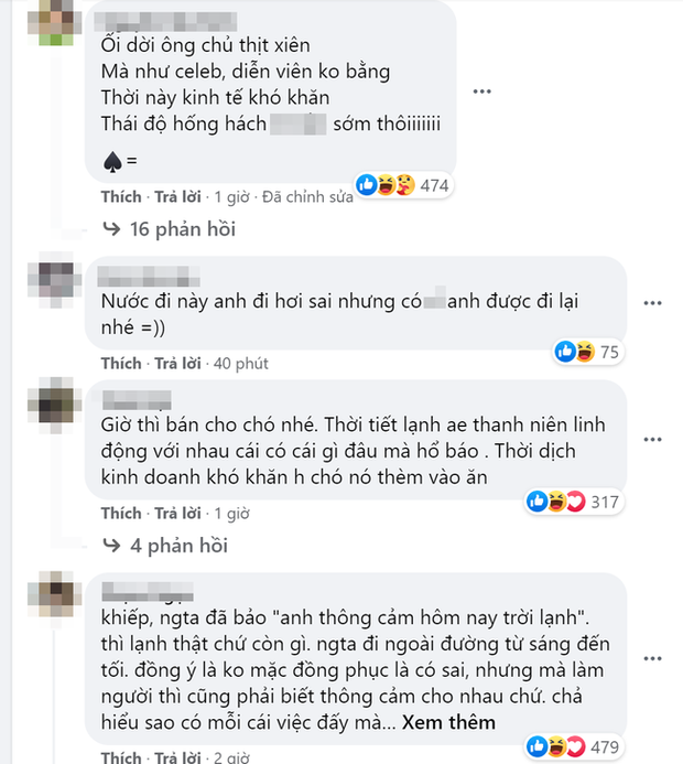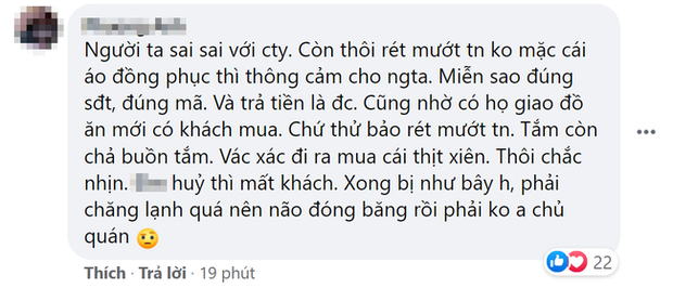 M.A.N: Mình bán đồ qua N rất thương shipper, nhất là những ngày trời rét như thế này mặc áo đồng phục có khi không đủ ấm. Quán hay ship đều là những người kiếm tiền, hỗ trợ nhau để đồ ăn đến tay khách được ngon và còn đẹp, nên cái gì cảm thông được thì cảm thông thôi sao phải hống hách thế?