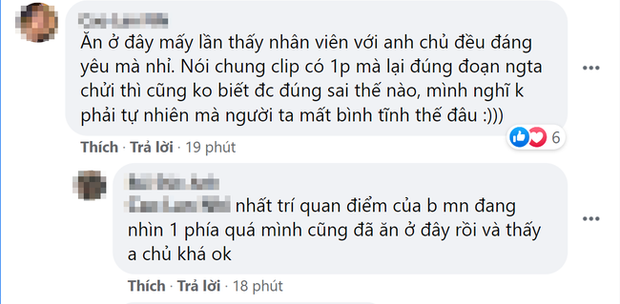 Tuy nhiên, nhiều người cũng cho biết sẽ không đánh giá điều gì khi chỉ nghe từ 1 phía, chỉ xem 1 clip. Ngoài ra, một số khách quen của quán cũng khẳng định nhiều lần ghé ăn ông chủ và nhân viên đều rất thân thiện: