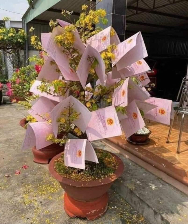Bên cạnh đó, nhiều bình luận để lại thì cho rằng có lẽ chỉ là màn đùa vui của chủ nhân bài viết. Bởi cũng có người ''đu trend'' dễ dàng bằng cách in màu 1 cuốn sổ đỏ ra nhiều tờ khác nhau và sau đó đặt lên cây mai, cây đào hoặc quất.