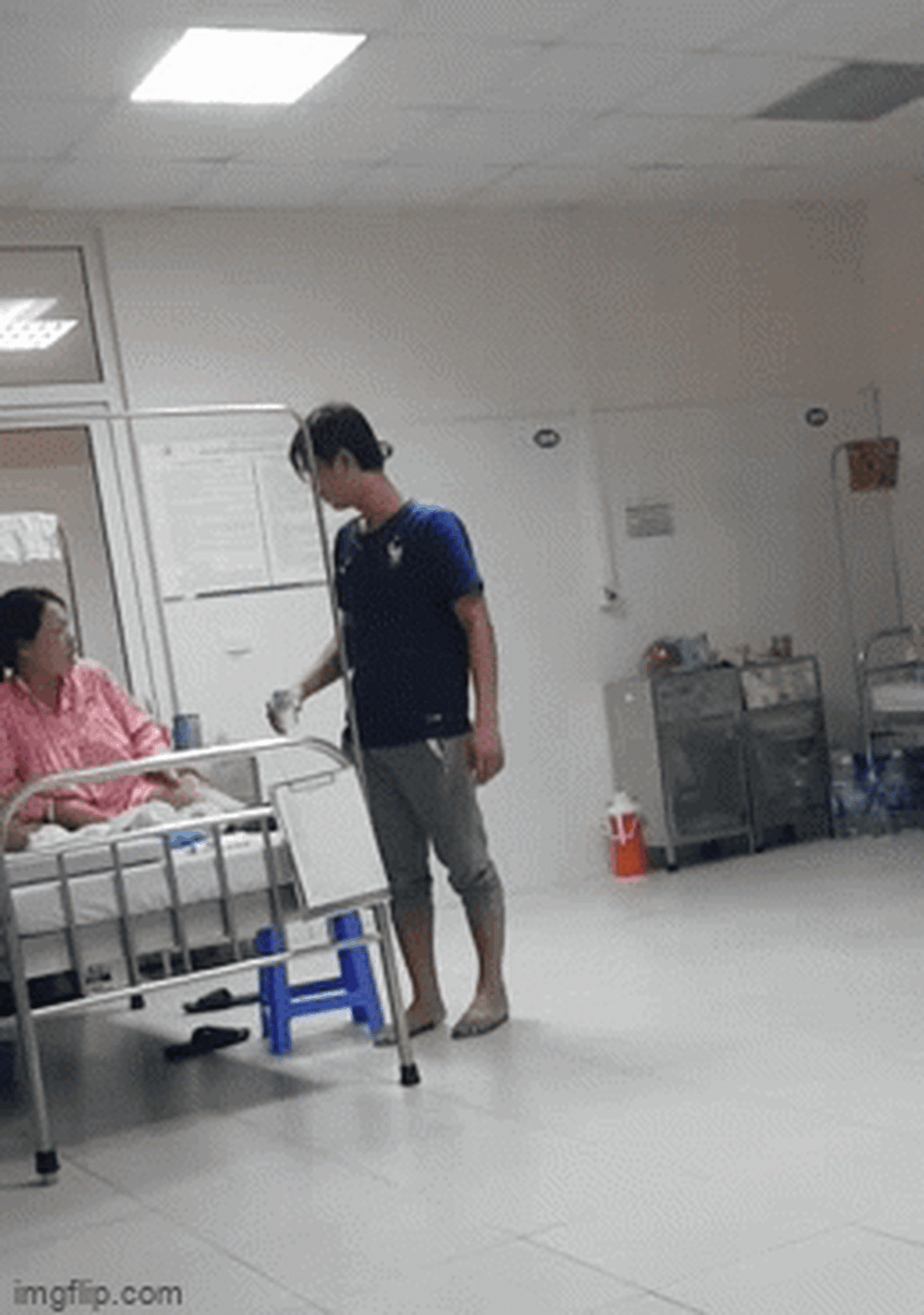 Sau khi thể hiện thái độ hằn học với vợ, anh ta lập tức quay ra nói với chị A nằm giường bên: "Thôi thôi, anh biết rồi, anh xin lỗi". Nghe lời đe dọa từ chồng, người vợ đành im lặng, ngồi ru con. Tuy nhiên, chị A ở giường ối diện vẫn tiếp tục chửi rủa, mạt sát bằng nhiều từ ngữ tục tĩu.