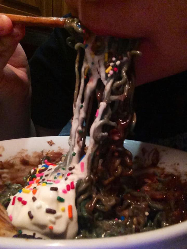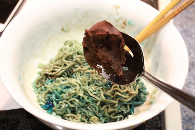Xin lưu ý, đừng thử làm món mì trộn “tả phí lù” này dưới mọi hình thức nàokẻo đi cấp cứu thật thì nguy nhé!