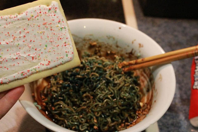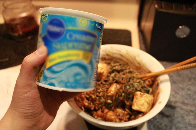 Mới đây, một bộ ảnh về công thức làm mì trộn đang thu hút hơn 40k share, 9k bình luận. Một cô gái người nước ngoài đã nổi hứng “chế” công thức làm mì trộn kết hợp với đủ các loại nguyên liệu. Thành quả khiến ai cũng hãi hùng.