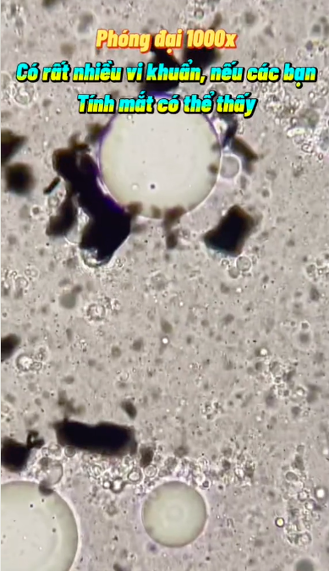 Thậm chí ở lần phóng đại 2000x, tài khoản @kinhhienvi còn phát hiện cả vi khuẩn que, loại khuẩn mà người này từng soi được trong nước sông Tô Lịch. Cuối video, anh còn khuyên người xem nên cân nhắc thật kỹ trước khi quyết định mua và sử dụng loại đồ hộp có nguồn gốc không rõ ràng này.