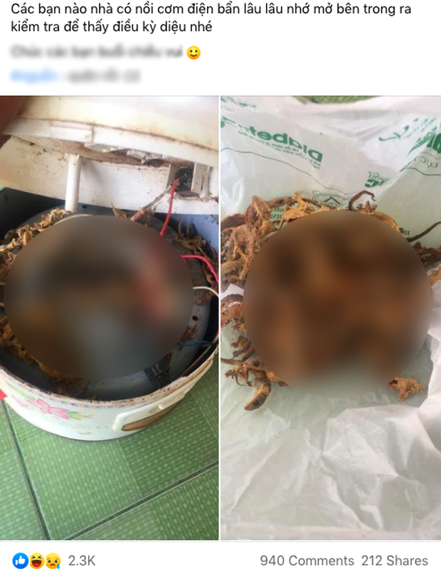 Bài đăng trong một nhóm cộng đồng nọ đang khiến cõi mạng rùng mình. Lâu ngày mới nhấc phần đế nồi cơm điện lên để kiểm tra bên trong thì gia đình này mới biết toàn là… xác thạch sùng đã khô quắt từ đời nào. Cảnh tượng vừa đáng thương, vừa ghê sợ.