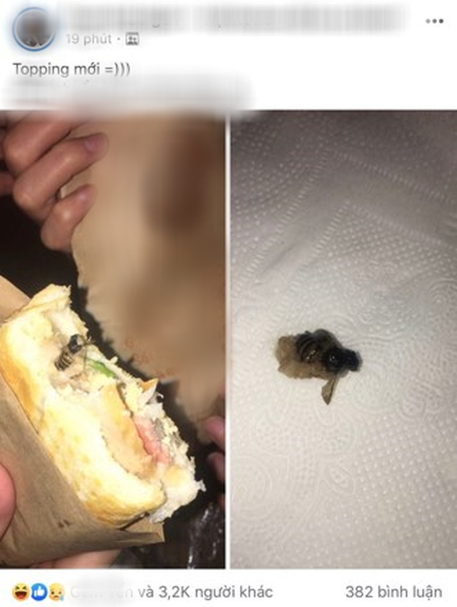 Hay như trường hợp của cô nàng "số nhọ" T.K.N ưới đây. Đang hạnh phúc thưởng thức chiếc bánh mì thơm ngon, cô gái "đứng hình" khi vô tình chứng kiến xác một con ong nằm ngay giữa phần nhân.