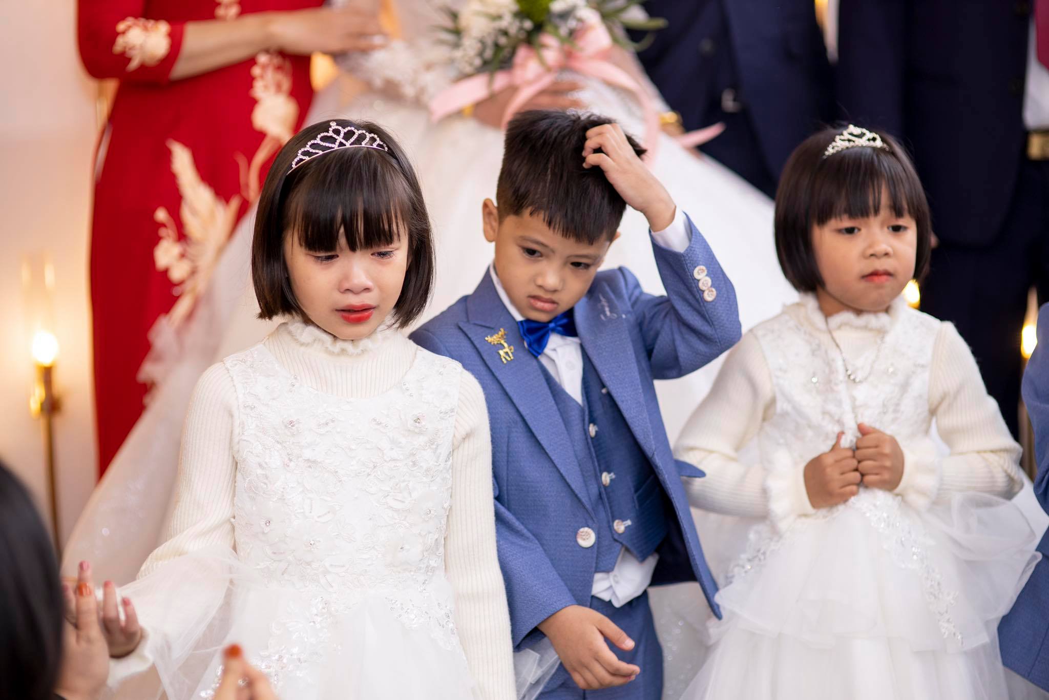 Đặc biệt trong ngày cưới, một trong những khoảnh khắc xúc động nhất có lẽ là khi con trẻ tận mắt thấy cha mẹ bước lên lễ đường cùng "người xa lạ".