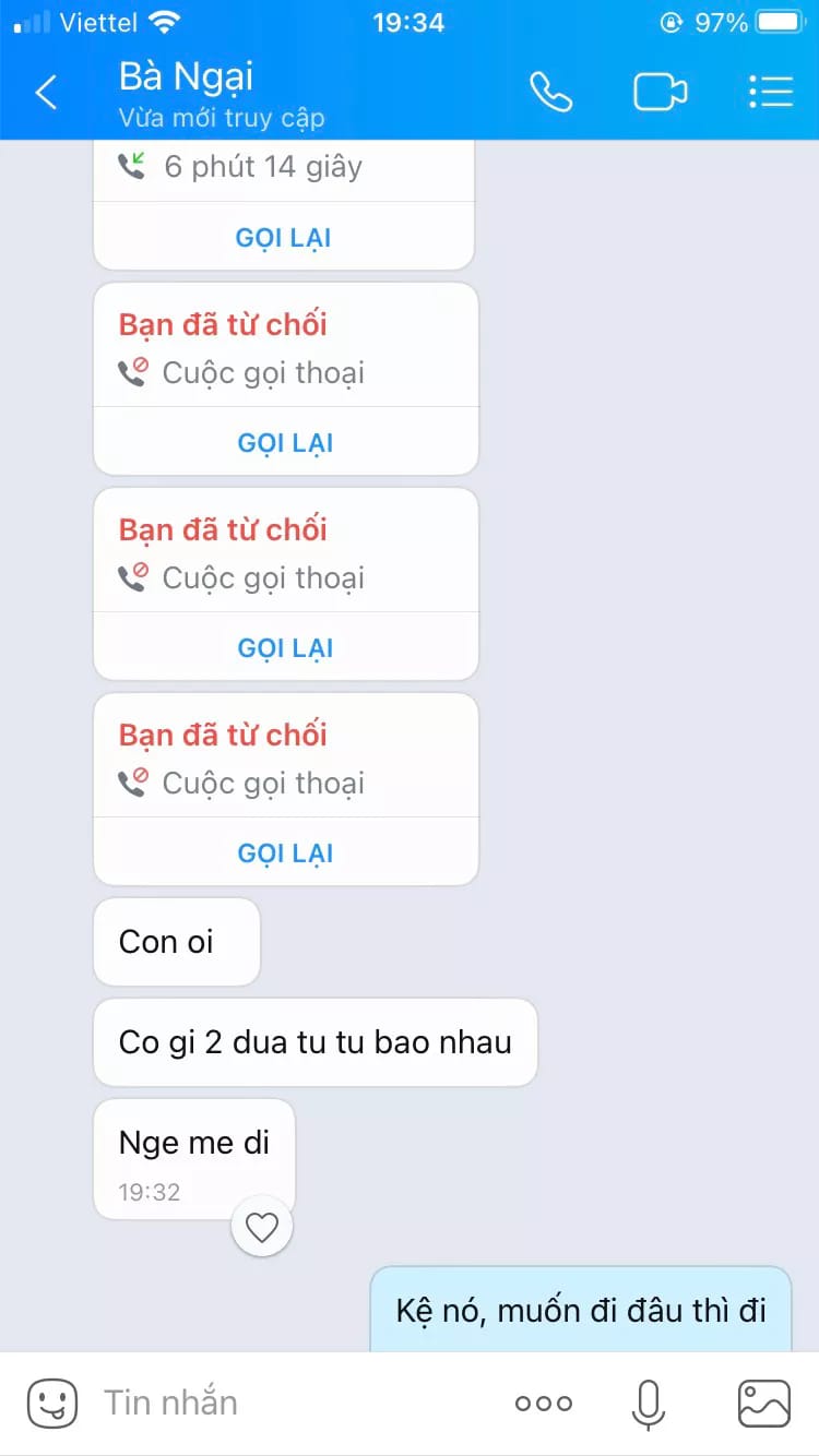 Giờ anh bảo để cho em về cho mẹ em dạy lại. Mẹ em khuyên hết nước hết cái giờ anh không thèm nghe. Rồi anh lên mạng kể lể là em không biết điều, bảo em ít học, không biết đối nhân xử thế. Thật sự em bế tắc lắm mọi người ạ, em phải làm gì bây giờ?