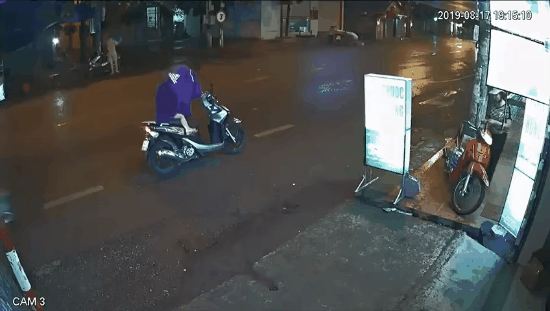 Rất nhiều phương tiện lao qua ầm ầm mà người phụ nữ không hề sợ hãi lo lắng, vẫn bình thản giở áo mưa ra. Không nằm ngoài dự đoán, đến giây thứ 25 trong clip, một nữ "ninja" khác đã đâm thẳng vào đuôi xe của chị gái áo mưa tím, khiến bé gái trên xe rơi xuống đường.