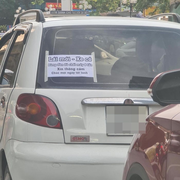 Cụ thể, một người đi đường đã chụp được tấm biển thông báo dán sau xe của một tài xế mới tập lái với nội dung: "Lái mới - Xe cỏ. Dừng đèn đỏ chết máy 8 lần. Xin thông cảm. Chúc mọi người tốt lành".