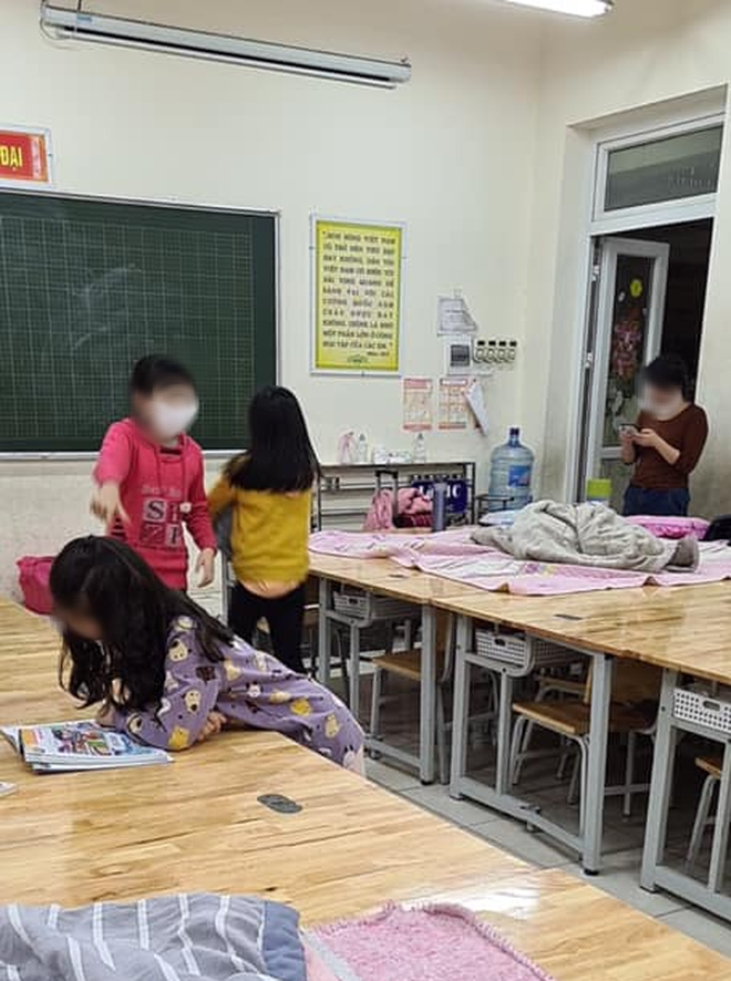 Chuẩn bị xong cho con, bố mẹ nói chuyện thì con lên giường tầng và khóc rất nhiều. Chắc con sợ vì không có bố mẹ ở bên. Nhưng sau cô Hiệu trưởng lại thông báo có được kèm phụ huynh và cách ly tại trường thì con đã không còn khóc và sợ nữa. Hơn 11h đêm, bạn con, bố con và mẹ bạn đến trường cách ly.