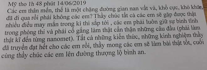 Và câu chuyện về một người thầy ở trường THPT Chuyên Tiền Giang với lời tâm sự dành cho trò trước ngày thi đang được truyền tay nhau trên mạng xã hội, đã khiến không ít các cô cậu học trò đọc được đều phải xúc động.