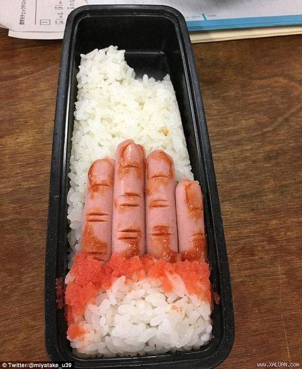 Đáng chú ý là tấm ảnh chụp hộp cơm vợ làm lúc giận. Chẳng biết trong trường hợp này anh chồng nên ăn năn, hối lỗi với vợ hay là nên cười hả hê sau đó vờ nhắn tin khen cơm vợ làm thì mới hợp tình hợp lý.