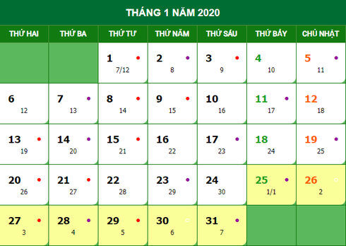 Mùng 1 Tết 2020 là ngày mấy Dương lịch?