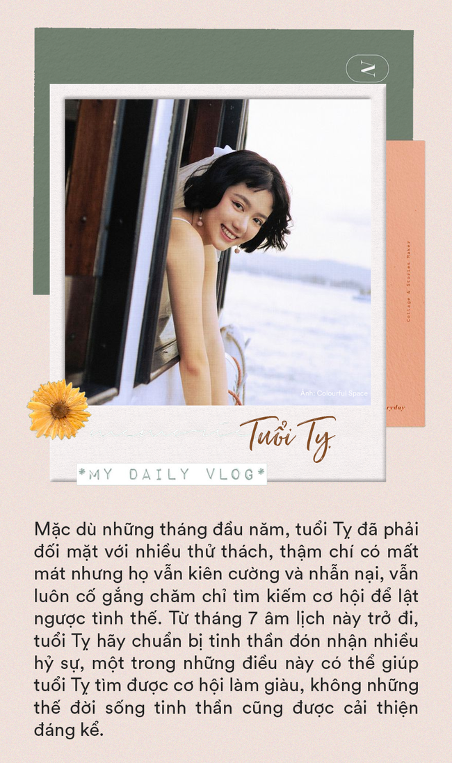 Tử vi học có nói, trong năm 2020 này, cuộc sống của tuổi Tỵ có nhiều chuyển biến bất ngờ. Mặc dù những tháng đầu năm, tuổi Tỵ đã phải đối mặt với nhiều thử thách, thậm chí có mất mát nhưng họ vẫn kiên cường và nhẫn nại, vẫn luôn cố gắng chăm chỉ tìm kiếm cơ hội để lật ngược tình thế. Từ tháng 7 âm lịch này trở đi, tuổi Tỵ hãy chuẩn bị tinh thần đón nhận nhiều hỷ sự, một trong những điều này có thể giúp tuổi Tỵ tìm được cơ hội làm giàu, không những thế đời sống tinh thần cũng được cải thiện đáng kể.