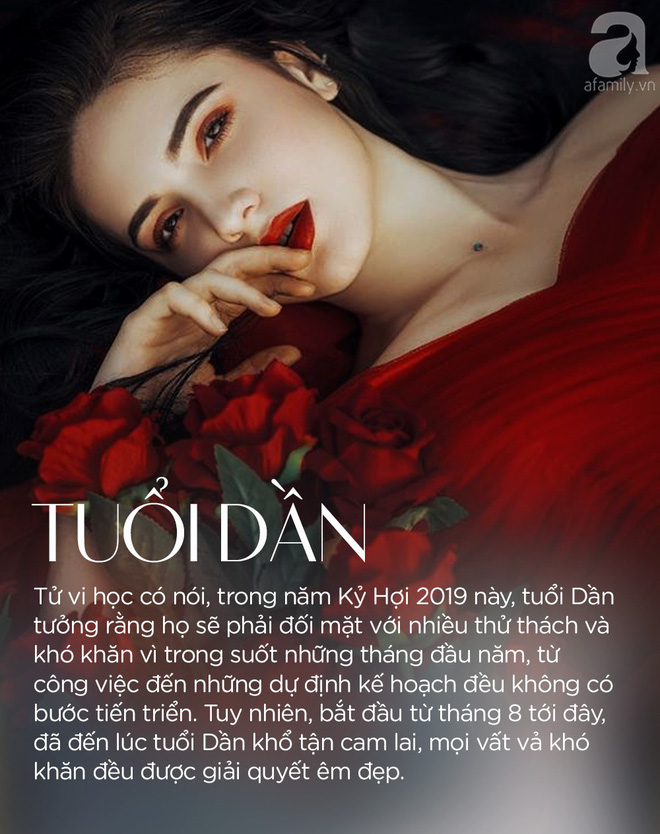 Tuy nhiên, bắt đầu từ tháng 8 tới đây, đã đến lúc tuổi Dần khổ tận cam lai, mọi vất vả khó khăn đều được giải quyết êm đẹp, những ai chật vật trong đời sống vật chất thì sẽ tìm được cơ hội thoát khỏi hoàn cảnh đó và phát triển sự nghiệp một cách suôn sẻ, trơn tru.