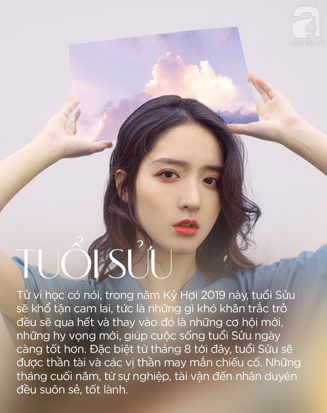 Tử vi học có nói, trong năm Kỷ Hợi 2019 này, tuổi Sửu sẽ khổ tận cam lai, tức là những gì khó khăn trắc trở đều sẽ qua hết và thay vào đó là những cơ hội mới, những hy vọng mới, giúp cuộc sống tuổi Sửu ngày càng tốt hơn.