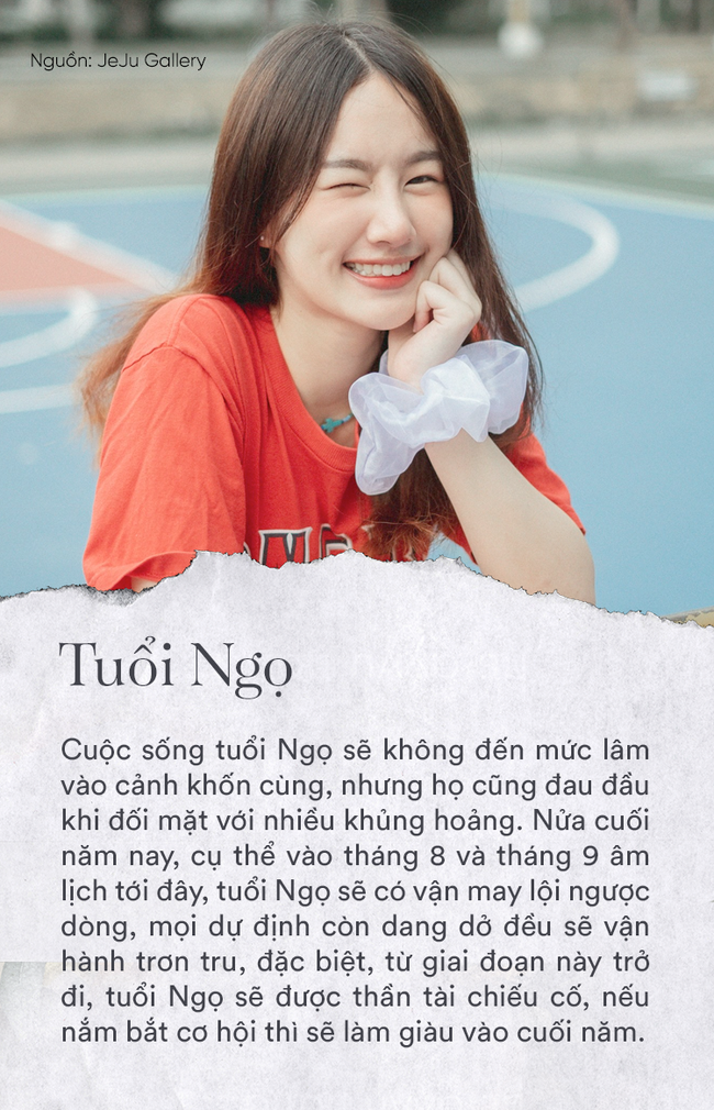 Tử vi học có nói, trong năm 2020 này, cuộc sống tuổi Ngọ tuy có nhiều bất trắc khó khăn vào những tháng đầu năm nhưng sau đó sẽ khổ tận cam lai, mọi thử thách đều vượt qua được. Cuộc sống tuổi Ngọ sẽ không đến mức lâm vào cảnh khốn cùng, nhưng họ cũng đau đầu khi đối mặt với nhiều khủng hoảng. Nửa cuối năm nay, cụ thể vào tháng 8 và tháng 9 âm lịch tới đây, tuổi Ngọ sẽ có vận may lội ngược dòng, mọi dự định còn dang dở đều sẽ vận hành trơn tru, đặc biệt, từ giai đoạn này trở đi, tuổi Ngọ sẽ được thần tài chiếu cố, nếu nắm bắt cơ hội thì sẽ làm giàu vào cuối năm.