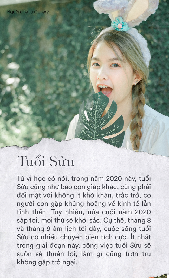 Tử vi học có nói, trong năm 2020 này, tuổi Sửu cũng như bao con giáp khác, cũng phải đối mặt với không ít khó khăn, trắc trở, có người còn gặp khủng hoảng về kinh tế lẫn tinh thần. Tuy nhiên, nửa cuối năm 2020 sắp tới, mọi thứ sẽ khởi sắc. Cụ thể, tháng 8 và tháng 9 âm lịch tới đây, cuộc sống tuổi Sửu có nhiều chuyển biến tích cực. Ít nhất trong giai đoạn này, công việc tuổi Sửu sẽ suôn sẻ thuận lợi, làm gì cũng trơn tru không gặp trở ngại. Ngoài ra, những người tuổi Ngọ sắp tới sẽ được thần tài và quý nhân phù trợ, cơ hội làm giàu đang ở trước mặt, chỉ cần đi đến nắm bắt thì sẽ thăng hoa viên mãn vào cuối năm.