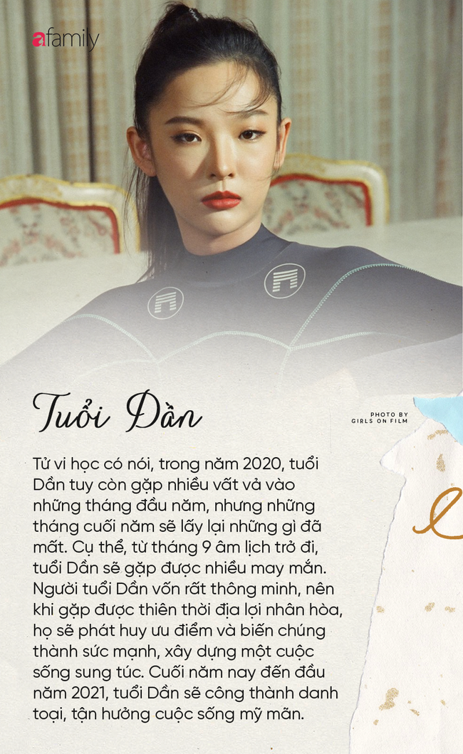Tử vi học có nói, trong năm 2020, tuổi Dần tuy còn gặp nhiều vất vả vào những tháng đầu năm, nhưng những tháng cuối năm sẽ lấy lại những gì đã mất. Cụ thể, từ tháng 9 âm lịch trở đi, tuổi Dần sẽ gặp được nhiều may mắn. Người tuổi Dần vốn rất thông minh, nên khi gặp được thiên thời địa lợi nhân hòa, họ sẽ phát huy ưu điểm và biến chúng thành sức mạnh, xây dựng một cuộc sống sung túc. Cuối năm nay đến đầu năm 2021, tuổi Dần sẽ công thành danh toại, tận hưởng cuộc sống mỹ mãn.